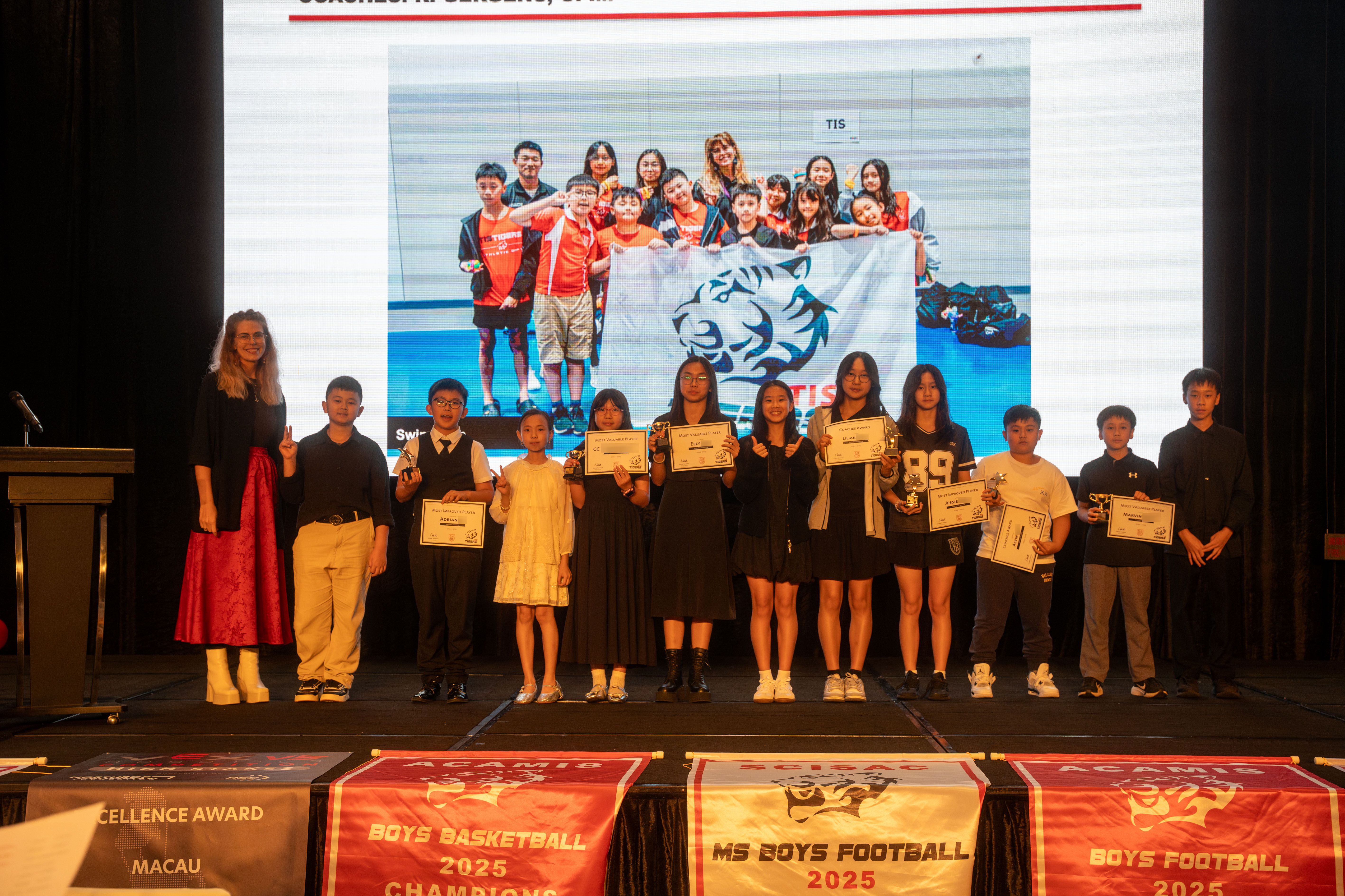 As the sports season comes to a close, it’s time to bring together athletes, coaches, families, and friends to celebrate the remarkable achievements of our TIS Tigers at the annual TIS Athletic Banquet 2025! This has been an outstanding year, with our athletes truly excelling across different competitions and pushing themselves to new heights. Notable highlights include our 14 and under girls securing the First Place in the Long Jump, while our 19 and under girls took home the Third Place win in the 4x100m relay, at the ACAMIS Track & Field, the under 12 boys basketball being awarded Third Place in the Macau Junior Basketball League, and our TIS swimmers’ phenomenal performance at the Spring Splash Swim Competition, racking up a total of 225 points, with 16 First Place wins, 5 Second Place wins, and 4 Third Place wins individually! In the DSEDJ tennis competition, Group C Girls secured the first place win, while in table tennis, the girls won the second place! The DSEDJ swimming competition was particularly impressive, with the team earning 8 gold, 5 silver, and 5 bronze medals! Among the girls in Group B, a new record was set for the 50m backstroke and the 100m freestyle!