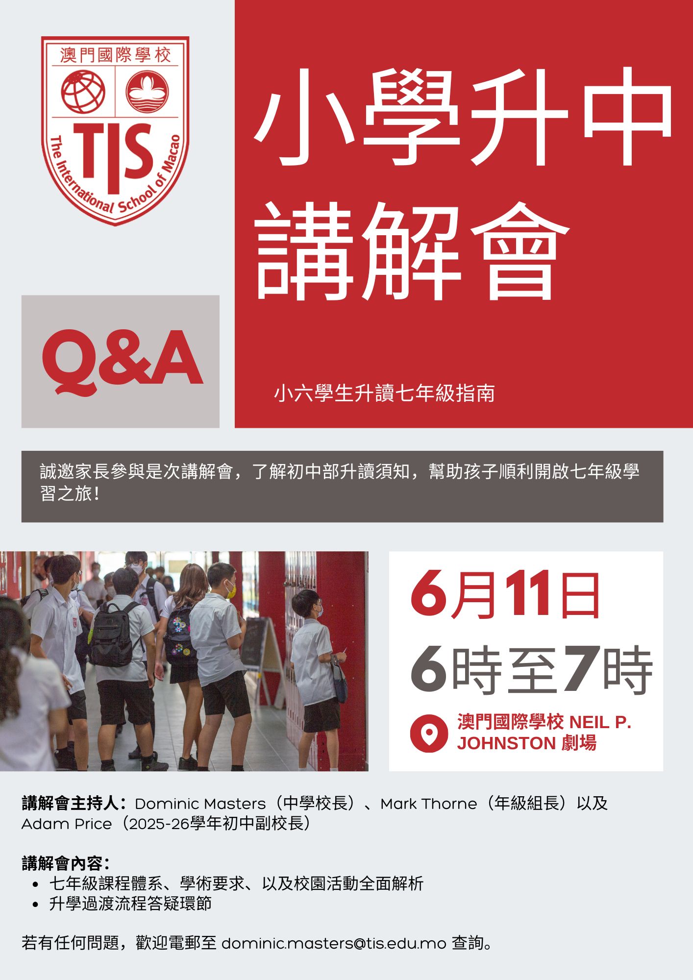 This Meeting will be lead by Secondary Principal Mr. Masters, Mr. Thorne (Grade team leader) and Mr. Price (Middle School Vice Principal for 2025-2026).
